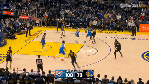 末节开打还剩11分23秒时,乔收到肯里奇-威廉姆斯助攻,三分投篮命中,将比分改写为98-66,雷霆外线继续发力。