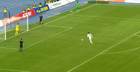 主场作战的广东队踢得顺风顺水,比赛的第14分钟,易县龙突入禁区之后被劳列斯绊倒,主裁判判罚点球,姜至鹏主罚点球破门,1比0!