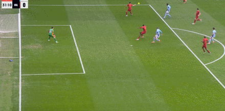 第39分钟,阿尔梅达禁区前沿拿球,调整后一脚贴地斩打偏。
