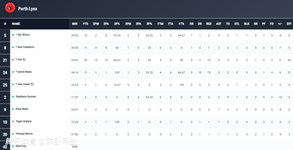 2026-01-04 12:40北京时间1月4日,WNBL常规赛珀斯山猫女篮客场74-77爆冷惜败堪培拉首都女篮被终结7连胜。中国女篮核心韩旭大爆发,她此役首发33分02秒,20中12得到30分15篮板2抢断3盖帽,其中