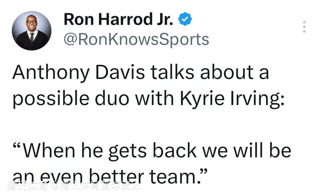 关于队友欧文的伤情恢复进展,浓眉说道:“从这种严重的伤病中恢复是需要时间的。等你们什么时候有机会为他的复出举杯庆祝时,再问我这个问题吧。我不想过多谈论他的复出或者他现在的感觉。显然我很关心,但你知道,让他匆忙复出是不可取的,尤其是这种伤病。所以我们会沟通。我不是说要给出一个具体的时间表,我的意思是顺其自然,无论何时只要他准备好了。”