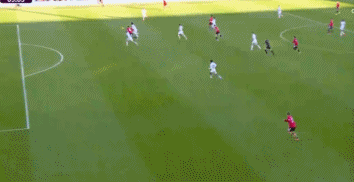 第62分钟,利兹联队快速反击,阿隆森强突海文之后左脚斜射破门,1比0!