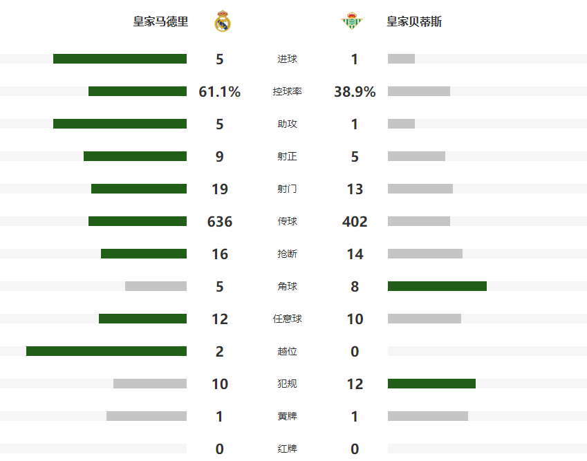 2026-01-05 01:20北京时间1月4日晚,西甲第18轮中,皇马主场5-1大胜贝蒂斯,取得联赛三连胜,积分仍落后巴萨4分。贡萨洛-加西亚打入西甲生涯首球后上演帽子戏法,阿森西奥与弗兰-加西亚各入一球,罗德里戈与巴尔韦德均两度助攻,库乔-埃尔南德斯助客队扳回一城。
