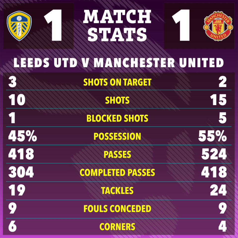 比赛最后时刻,库尼亚的一次远射击中门柱外侧。利兹联也有一两次威胁进攻被曼联门将拉门斯化解,双方最终1-1握手言和。双方各取一分,或许都会感到既满意又不满足。