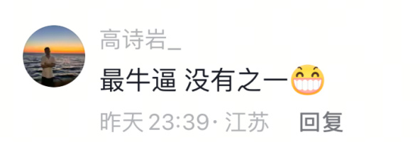 高诗岩现身在视频的评论区点评说道:“最牛逼,没有之一”。