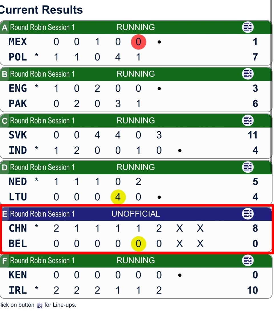 循环赛第一轮各队情况:中国VS比利时标红