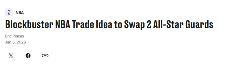 2026-01-06 06:10北京时间1月6日,知名美媒Bleacher Report撰文解析,认为哈登和特雷-杨应该互换东家,实现双赢,并提出了一笔3换1的交易方案。以下是相关分析和方案——
