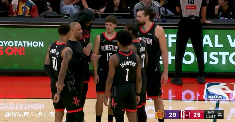 决胜时刻,火箭和太阳两队都频频打铁,布克三分打铁,阿门和伊森连续错失关键球,布克投出离谱三不沾,比赛还剩5.1秒,火箭执行最后一攻,杜兰特1.1秒三分准绝杀,最终火箭绝杀太阳,本赛季三杀太阳。
