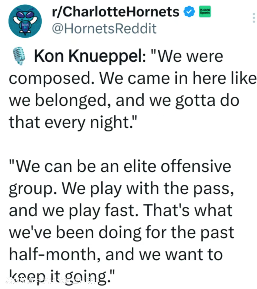 克努佩尔:我认为这就是我们的基调。我们分享球,打得很快,这也是过去一个半月我们一直在做的事情,我们希望能保持下去。