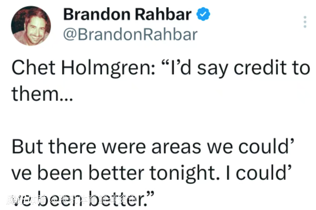 关于球队进攻效率与结果,霍姆格伦表示:“我们以前也经历过投篮手感不佳的夜晚,但依然能以大比分获胜。但今晚我们没能做到这一点,结果不言而喻。”