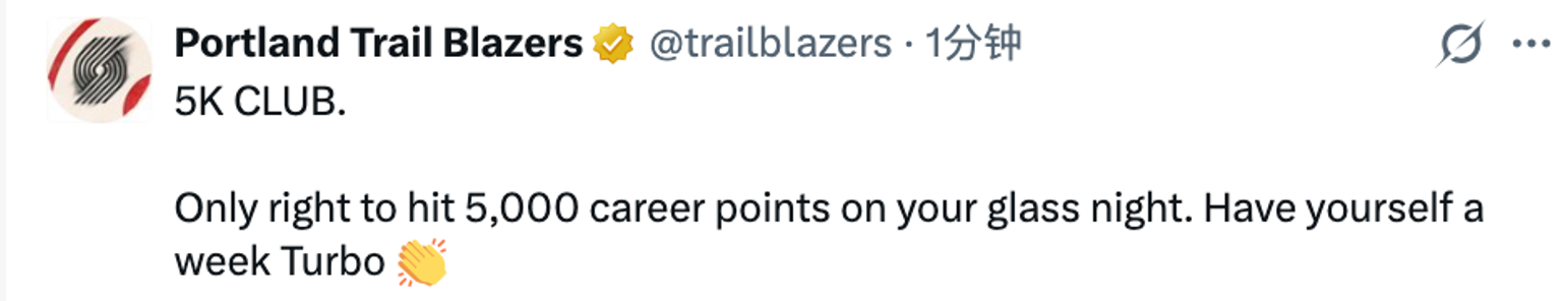 2026-01-06 12:50北京时间1月6日,NBA常规赛,开拓者主场对阵爵士,本场比赛开拓者球星阿夫迪亚迎来里程碑,让自己的得分突破5000大关。