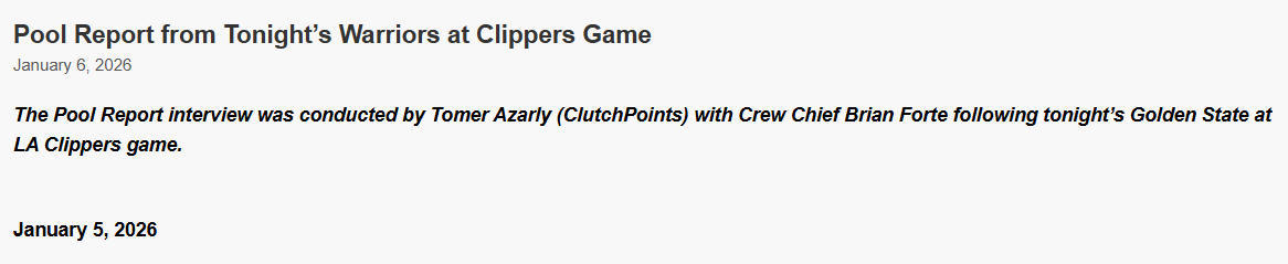 Brian Forte:佩顿的出手篮球先砸到篮板,之后才被科林斯触碰,这一球本该被判罚干扰球违例。不过这一球没办法触发自动回看,因为它并非发生在比赛最后两分钟内。唯一能启动回看的方式,是当值裁判先在场上做出判罚,随后由快船队对该判罚提出挑战。