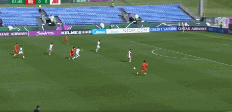 第42分钟,越南队角球送到后点,阮晓明推射建功,2-0领先约旦。