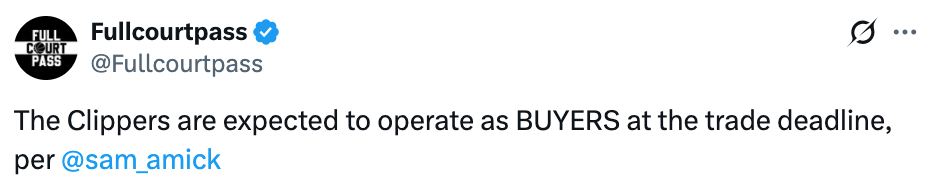 近期强势回暖!快船预计会在交易截止日扮演买家角色