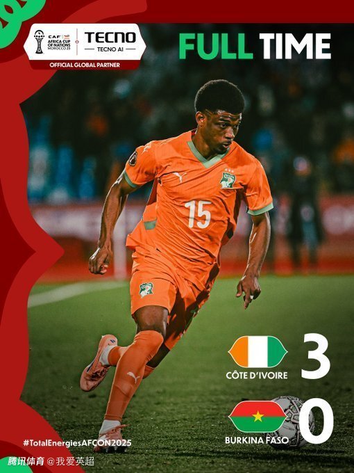 2026-01-07 06:30在北京时间1月7日结束的非洲杯1/8决赛一场焦点战中,卫冕冠军科特迪瓦以3-0完胜世界排名第62位的布基纳法索,强势晋级8强。他们将在1/4决赛面对赛会7冠王、萨拉赫领衔的埃及队。