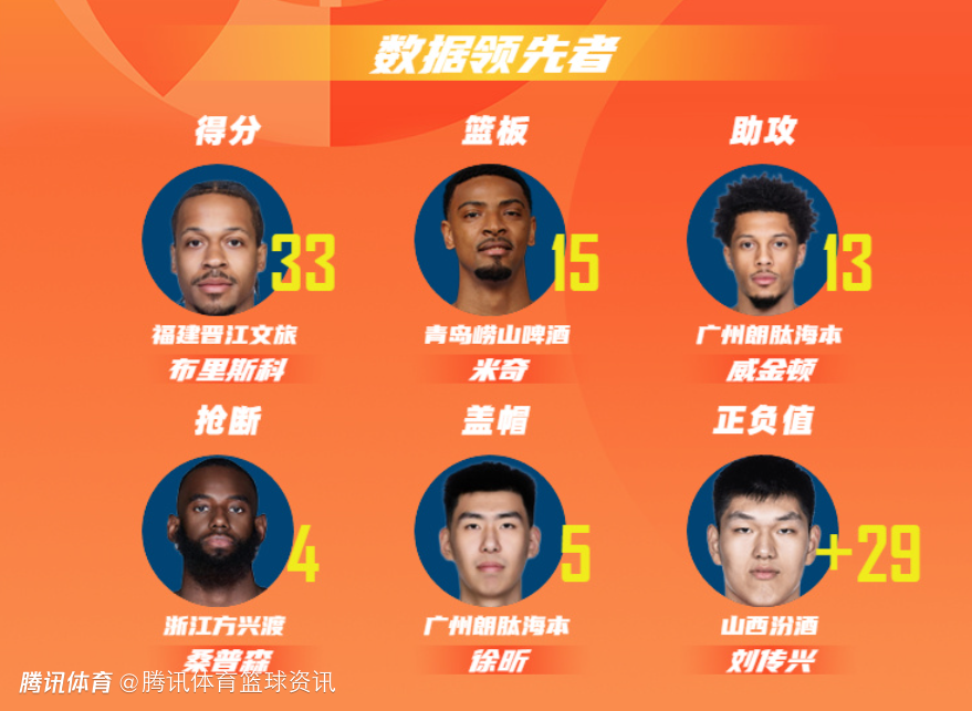 福建浔兴SBS男篮球员布里斯科以单场33分的数据领衔得分榜;