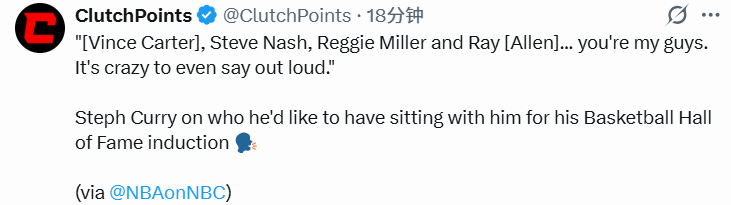 入选名人堂时希望谁在身边?库里:卡特、纳什、米勒、雷-阿伦