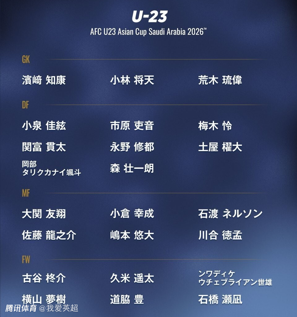 因为欧洲联赛正在如火如荼进行,荷甲内梅亨的佐野航大(600万欧)、热刺的高井幸大(500万欧)、萨尔茨堡的北野飒太(450万欧)、法兰克福的小杉启太(400万欧)等留洋欧洲的球员,都没入选本次日本队征战U23亚洲杯的阵容。