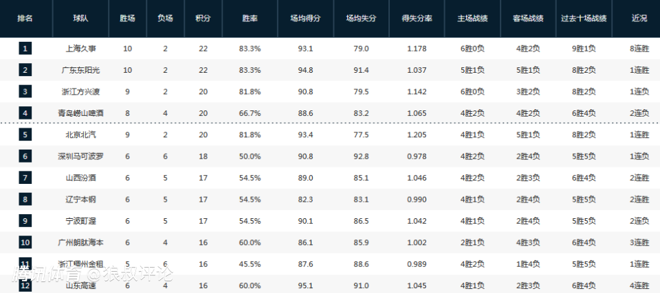值得一提的是上海新赛季目前取得10胜2负的战绩,高居积分榜第一,而上个赛季上海开局阶段是2胜10负,随着刘鹏下课,洛夫顿加盟等一系列操作,上海开启了漫长的北伐征程,直至重返季后赛区域。