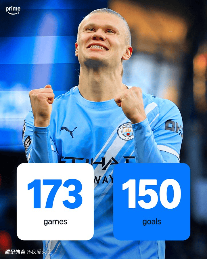 哈兰德迎来曼城生涯150球里程碑,哈兰德仅用了173场比赛便达成这一成就,刷新了英超自成立以来的最快纪录,领先其他球员至少28场比赛。