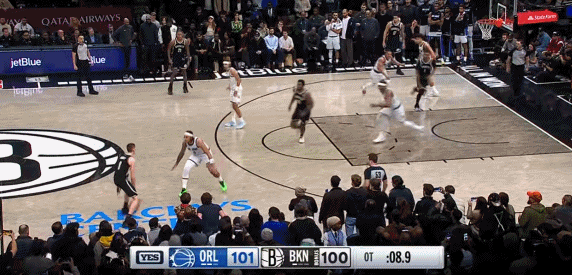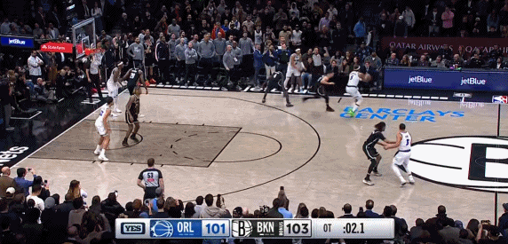 双方在常规赛时间内,班凯罗绝杀不中,让比赛进入加时赛,加时赛中,篮网新秀杰明命中关键三分,给魔术留下3.6秒的时间。随后班凯罗持球在弧顶命中打板的绝杀三分,帮助魔术以104-103击败篮网。