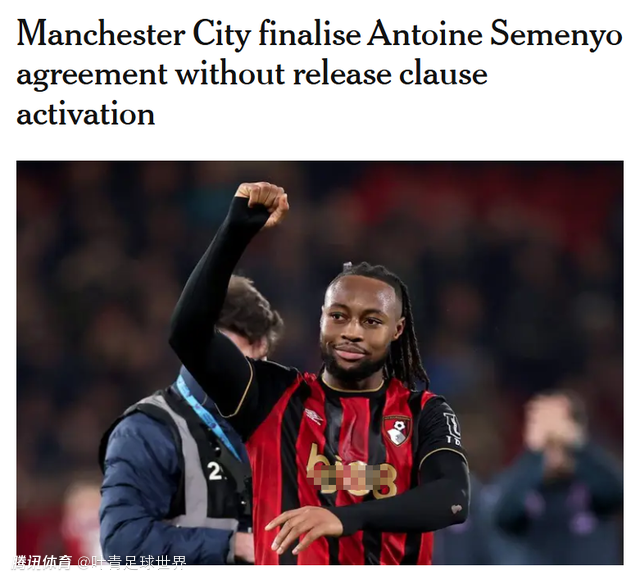 塞梅尼奥在2023年1月加盟伯恩茅斯,3年来,加纳边锋代表球队出场110次,贡献32球13助。去年夏天,塞梅尼奥与伯恩茅斯续约至2030年,违约金6500万英镑。TA指出,曼城不是以激活违约金的方式引进塞梅尼奥,而是转会协议,24个月之内分期付款。