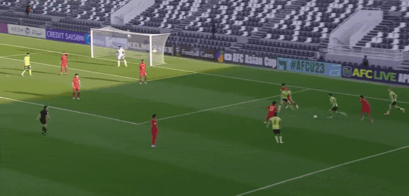 上半场战罢,澳大利亚2-1领先10人应战的泰国队。