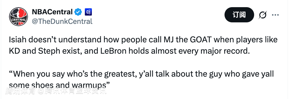 2026-01-09 00:50北京时间1月9日,近期,“微笑刺客”伊塞亚-托马斯在节目中谈到了关于GOAT的话题。