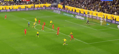 易边再战,第33分钟,C罗再次贡献离谱一幕。他在门前凌空抽射,皮球未能踢正。