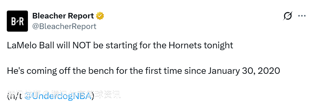据记者Rod Boone报道,球队做出如此调整是为了应对密集的背靠背赛程。黄蜂希望通过错开首发时间来优化三球的体能分配,从而在比赛决胜的第四节,让他能以更充沛的体能获得更多上场时间,最大化其对比赛的影响力。