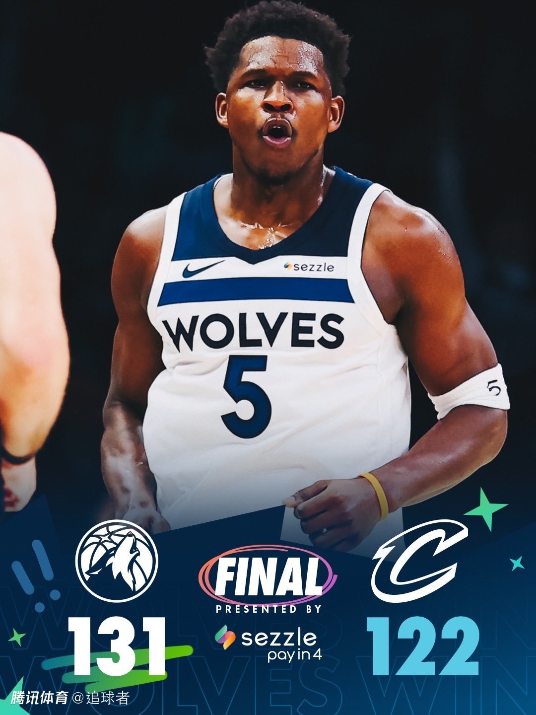 末节骑士疯狂反扑,爱德华兹登场后中投得分,正式解锁10000分新成就;之后骑士继续反扑,并且一波攻势追到4分,关键时刻爱德华兹突破上篮以及助攻麦克丹尼尔斯命中三分,森林狼稳住局面,最终森林狼有惊无险拿下胜利。