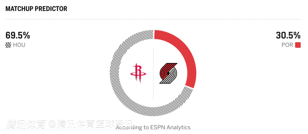 火箭69.5%,开拓者30.5%