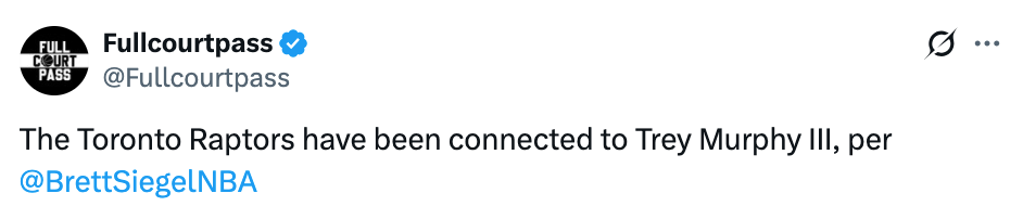 2026-01-10 00:30北京时间1月10日,据美记Brett Siegel报道,多伦多猛龙队已与特雷-墨菲三世产生交易关联。