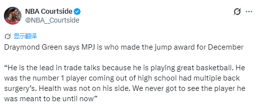 “小波特这段时间的表现简直不可思议。他是当年的全美第一高中生,却经历了多次背部手术,健康问题一直困扰着他,我们始终没能看到大家口中那个天赋爆棚的他。直到现在。你开始看到他展现出精英级别的三分投射、中距离干拔、突破终结、持球进攻,他正在成为我们当年听说过的那个球员,那个我们一直期待看到的版本。”
