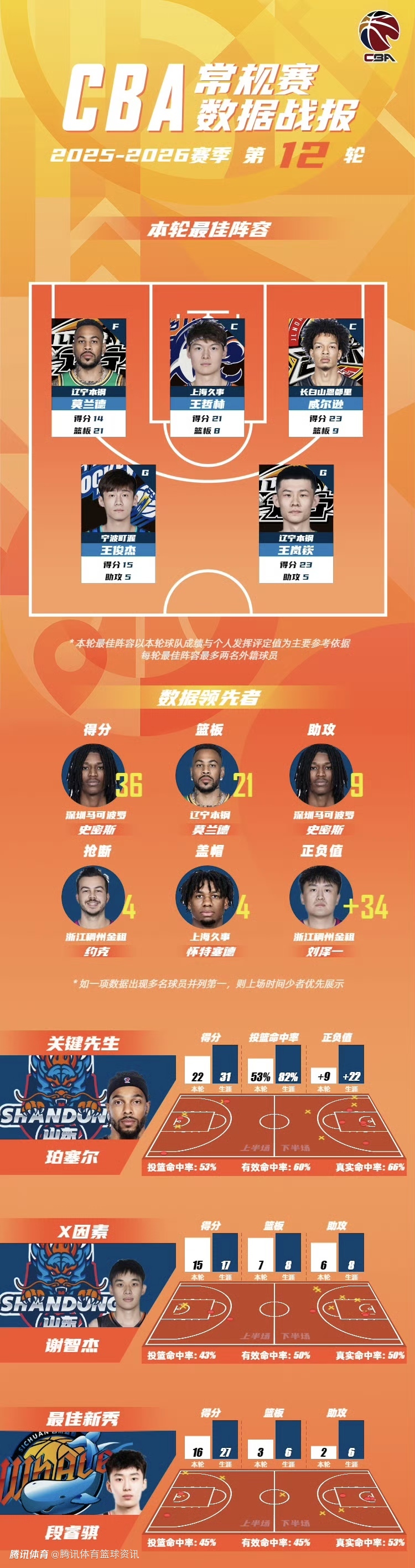 第12轮X因素球员由来自山东高速的谢智杰获得;