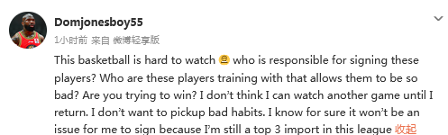 说谁?琼斯:这些球员谁签的?回CBA前我不想再看这种比赛了