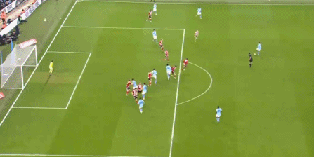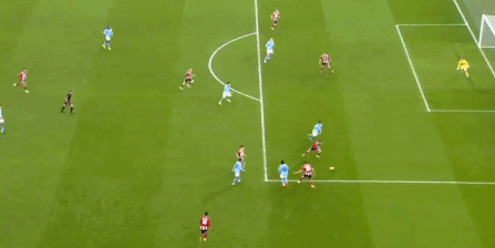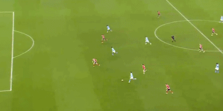 第53分钟,切尔基直塞,塞梅尼奥单刀突入禁区右脚推射破门,6比0!塞梅尼奥打入曼城处子球。