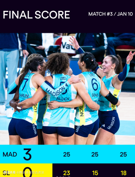 2026-01-11 08:20北京时间1月11日,在美国LOVB女排联赛中,麦迪逊以3-0(25-23/25-15/25-18)击败盐湖城,取得新赛季开门红。首次留洋的中国女排国手龚翔宇上演精彩处子秀,得到全场最高的15分,当选本场最佳球员。