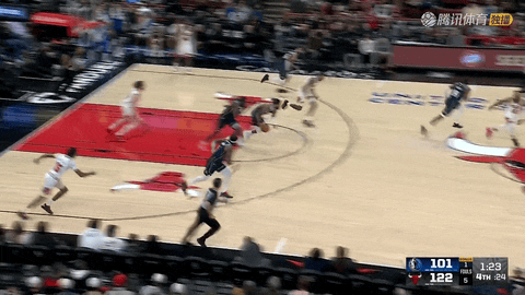 比赛尾声,哈迪在第四节还剩3分16秒时先命中一记三分,随后在还剩2分13秒和1分12秒时再中两记远投,连续命中三记三分,将比分从95:122追至104:122,把公牛的领先优势从27分缩小到18分。