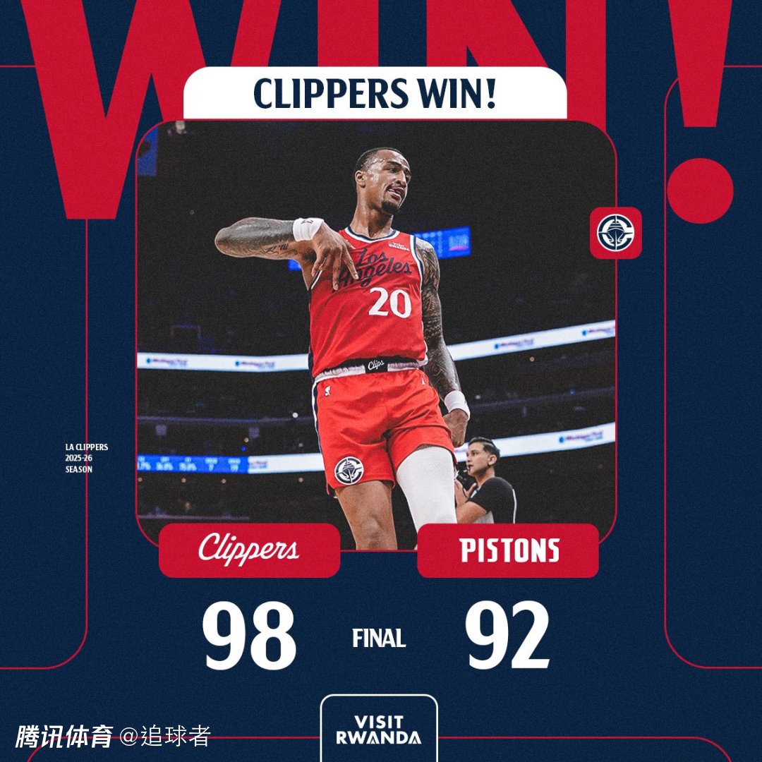 2026-01-11 12:00北京时间1月11日,NBA常规赛快船客场98-92逆转活塞,在客场19分逆转掀翻东部第一,成为本赛季第一支在活塞主场赢球的西部球队。