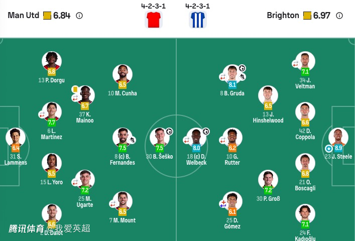 布莱顿首发:23-斯蒂尔、21-博斯卡利、24-卡迪奥卢、34-维尔特曼
