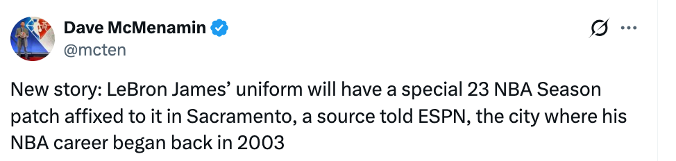 2026-01-13 01:10北京时间1月13日,据湖人队记DaveMcMenamin报道,消息源透露,从今天湖人对阵国王的比赛开始,詹姆斯的球衣上将配有特殊的纪念补丁,以纪念他创纪录的个人第23个NBA赛季。
