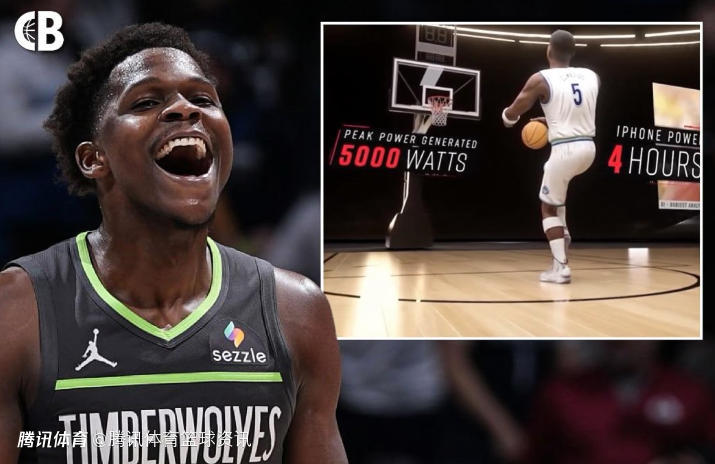 ESPN在视频中介绍道:“爱德华兹的快肌纤维运动速度在NBA中冠绝联盟,正是这些快肌纤维储存的能量,让他扣篮起跳的瞬间能爆发出5000瓦的峰值功率,可以给苹果手机充电4小时。”