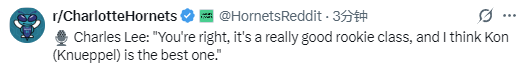 2026-01-13 10:50北京时间1月13日,NBA常规赛继续进行,黄蜂队对阵快船队。赛前,黄蜂队主教练查尔斯-李接受媒体采访,而他直言克努佩尔是这届新秀球员中最好的。
