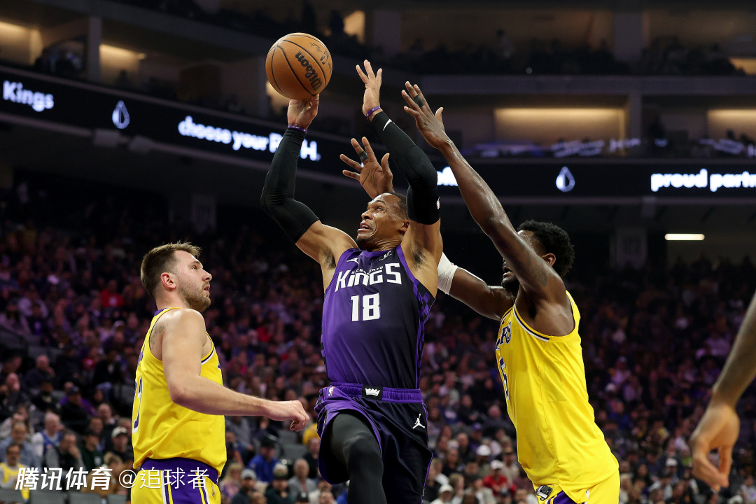 湖人做客萨克拉门托大战国王,詹姆斯和东契奇继续带队出战,第一节湖人28-32落后4分,詹姆斯开场空接暴扣,之后连续三次在禁区得分,开场连得8分,首节最后阶段,老詹背打转身过人并且顺势抛投得分,首节8投5中高效拿到10分。