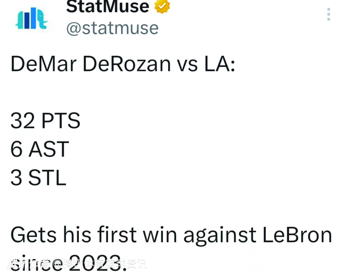 根据数据统计显示,这是德罗赞个人自从2023年至今首次击败詹姆斯。