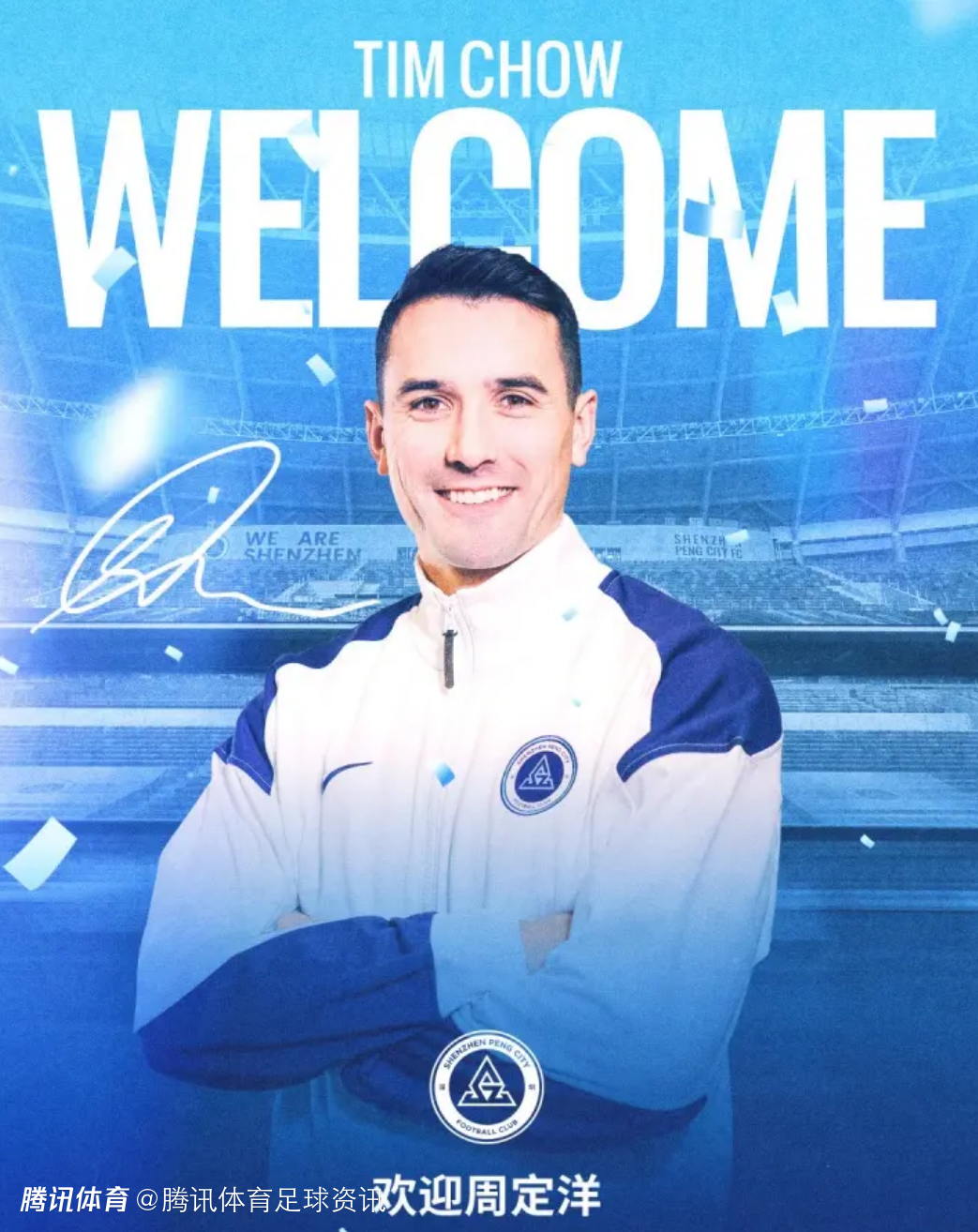 2026-01-13 16:20北京时间1月13日,深圳新鹏城官方宣布,31岁中场周定洋加盟深圳新鹏城!