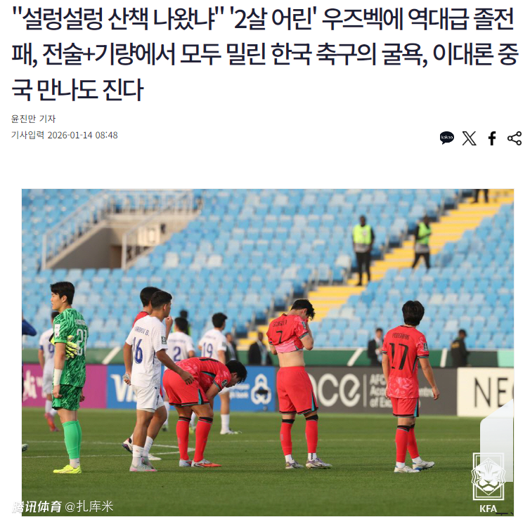 韩媒哀叹:以大打小耻辱性输给乌兹,若8强战遇中国队恐再被羞辱