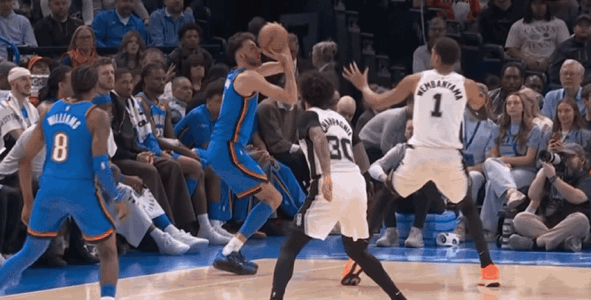 伴随着文班亚马和福克斯连得5分,马刺成功扳平比分。不过马刺距离反超比分总差一口气,文班亚马下场后给到对手太多防守反击的机会。虽然文班亚马在半场结束前回归,并且造成犯规获得罚球,不过他罚球手感并不好,只有2罚1中。半场比赛结束,马刺落后雷霆3分,文班亚马9中4得到10分5篮板1盖帽。