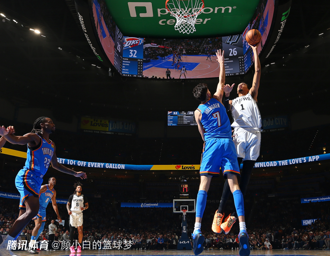 这是本赛季雷霆与马刺的第四次交手,前三次都是马刺取得胜利,联盟第一的雷霆极度想要挽尊完成复仇,开场两队拼防守就非常凶猛,文班亚马完成了隔扣霍姆格伦的大戏。SGA被贴防影响,好在卡森与威金斯分别命中三分。卡斯尔连拿五分回应,科内特两个前场篮板马刺都得分,米切尔突破得手,亚历山大造2+1马刺立马暂停,亚历山大再度命中反超,首节打完雷霆32-26领先马刺。